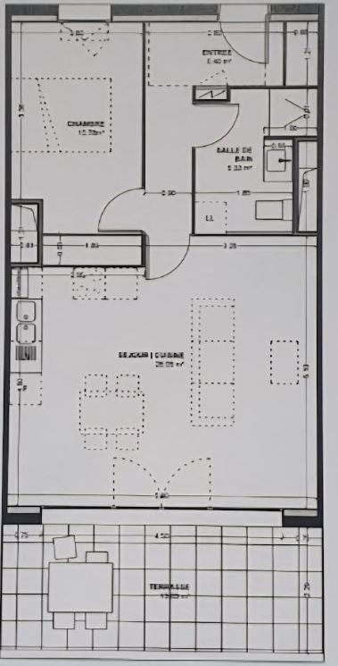 Offrant une entrée, un séjour avec une cuisine aménagée, une chambre, une salle d'eau avec WC. Une terrasse, une place de parking extérieur.