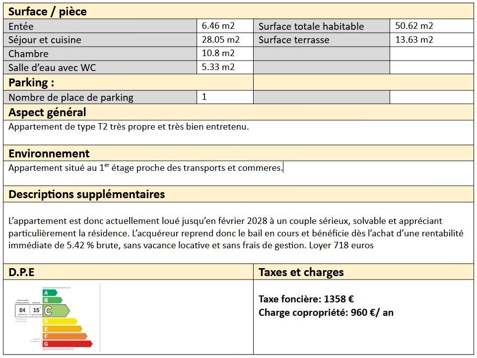 A vendre appartement de type T2 Vendu Loué